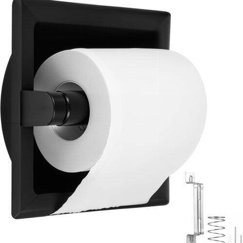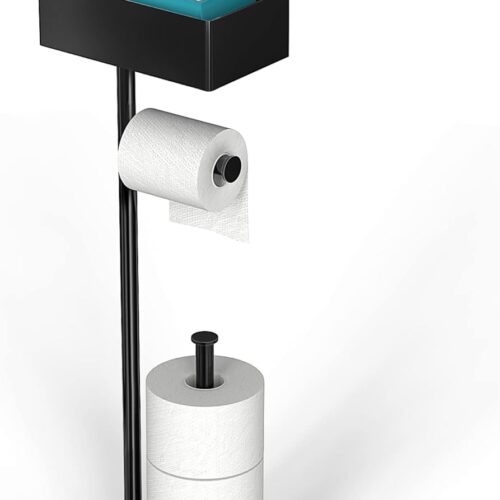 CISILY Black Toilet Paper Holder Stand with Storage Shelf, Free Standing Toilet Paper Roll Holders, Bathroom Toliet Tissue Holder Accessories Essentials