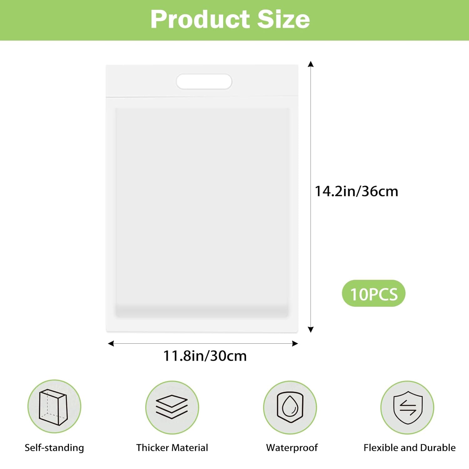 Self-Standing for Convenience: No adhesive needed! These bags feature a self-standing design that provides stability and ease of use. Simply set them up in any space, and they stay upright, making disposal quick and hassle-free. Built-in handles make carrying and tying them off a breeze.