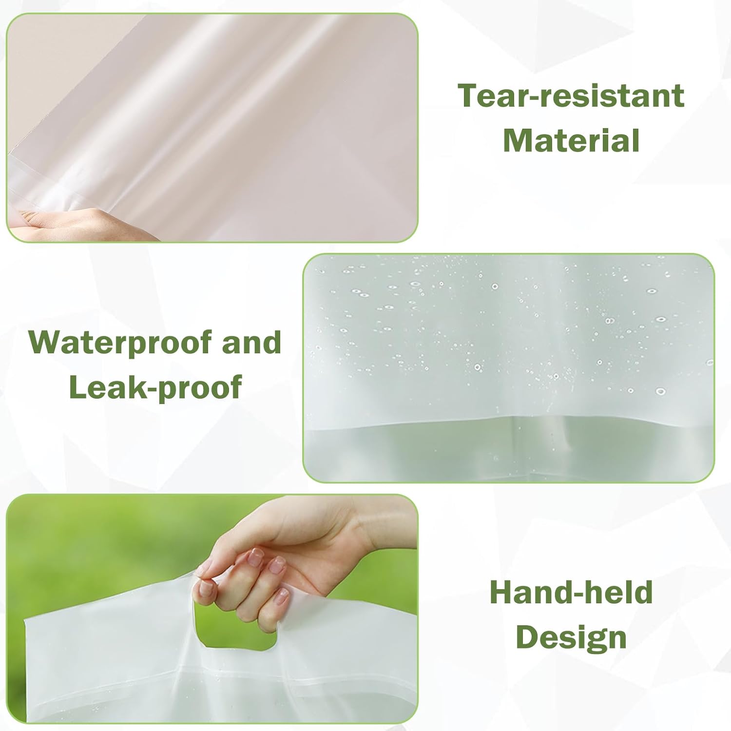 Durable HDPE Material: Crafted from high-density polyethylene (HDPE), these bags are ultra-durable, tear-resistant, and flexible. They are waterproof and leakproof, offering reliable protection against spills or leaks. Strong enough to handle your everyday trash with ease.