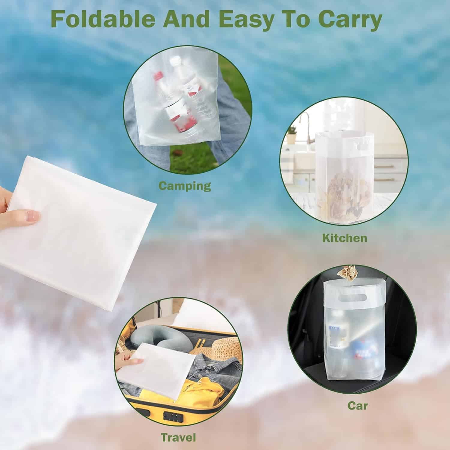 Convenient Pack & Easy to Store: This package contains 10 high-quality trash bags that are easy to store and take on the go. No more bulky trash bins—simply place these bags wherever you need them, and they’ll stand up on their own. Perfect for both travel and daily use.