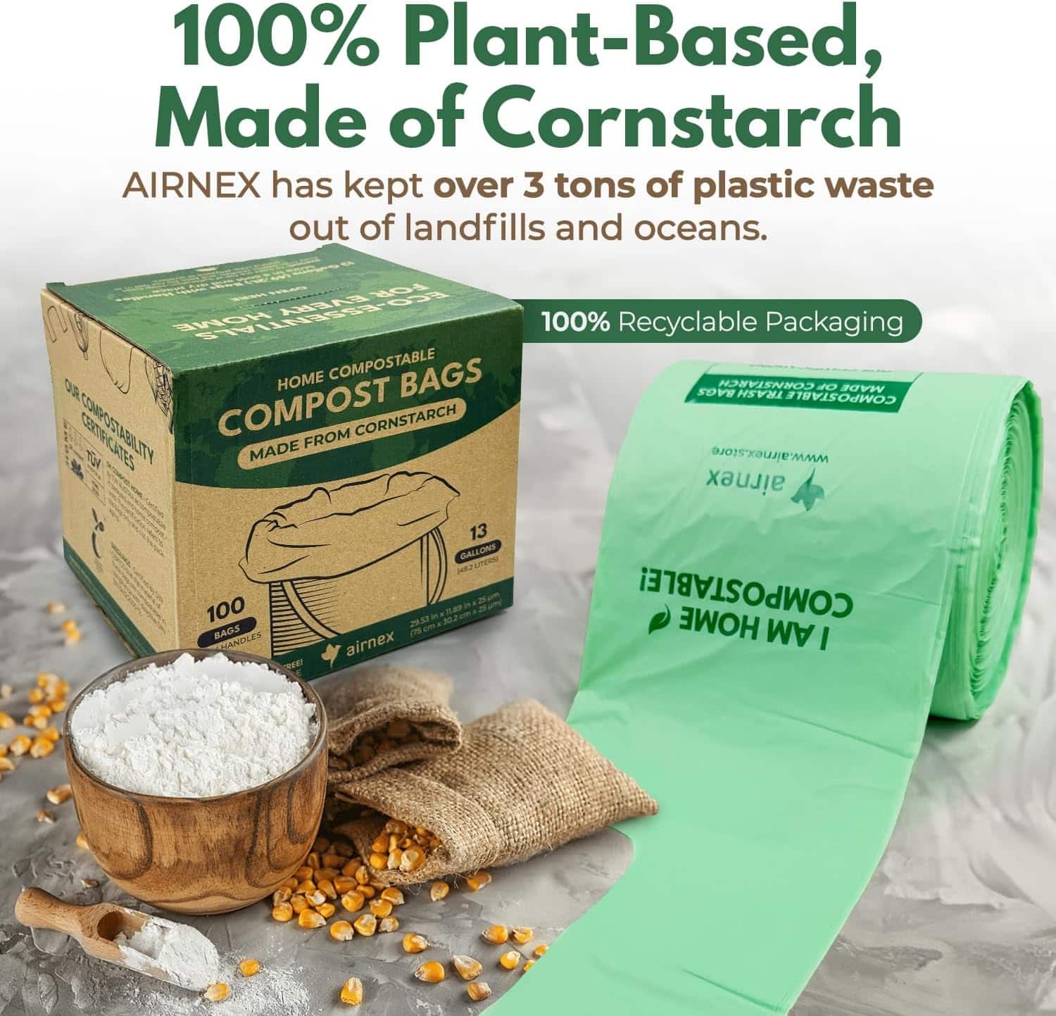 Introducing Airnex’s Compostable Trash Bags 13 Gallon – your indispensable companion for hassle-free and sustainable composting in the heart of your home. In each 100-count compost bags 13 gallon box, discover a thoughtful solution to simplify your kitchen waste management.