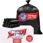 16-25 Gallon Trash Bags – Bulk 520 Count – Medium-Large Black Garbage Bags, 16,17,18,19,20, 21, 22, 23, 24, 25 Gal Trash Can Liners for Bathroom, Kitchen, Home, Office & Commercial – Tear-Off Roll