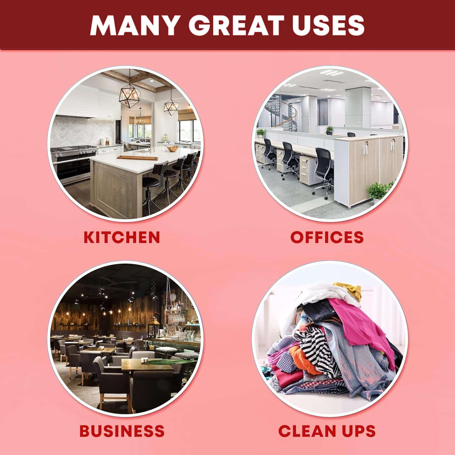 HOME, OFFICE & BUSINESS – A reliable option for kitchens, offices, schools, retail, housekeeping, janitorial services, public restrooms, hospitality, hotels, gyms, and more.