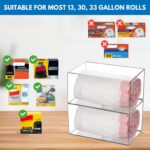 DOUBLE-SIDED CONVENIENCE: Elevate your organization with our acrylic trash bag dispenser roll holder, featuring a double-sided design for effortless access from both angles. This trash bag organizer under sink ensures quick application of plastic bags whenever you need them. Crafted with quality in mind, our acrylic trash bag dispenser is a lasting and functional garbage bag holder dispenser for any space. Say goodbye to clutter with our sleek trash bag holder.