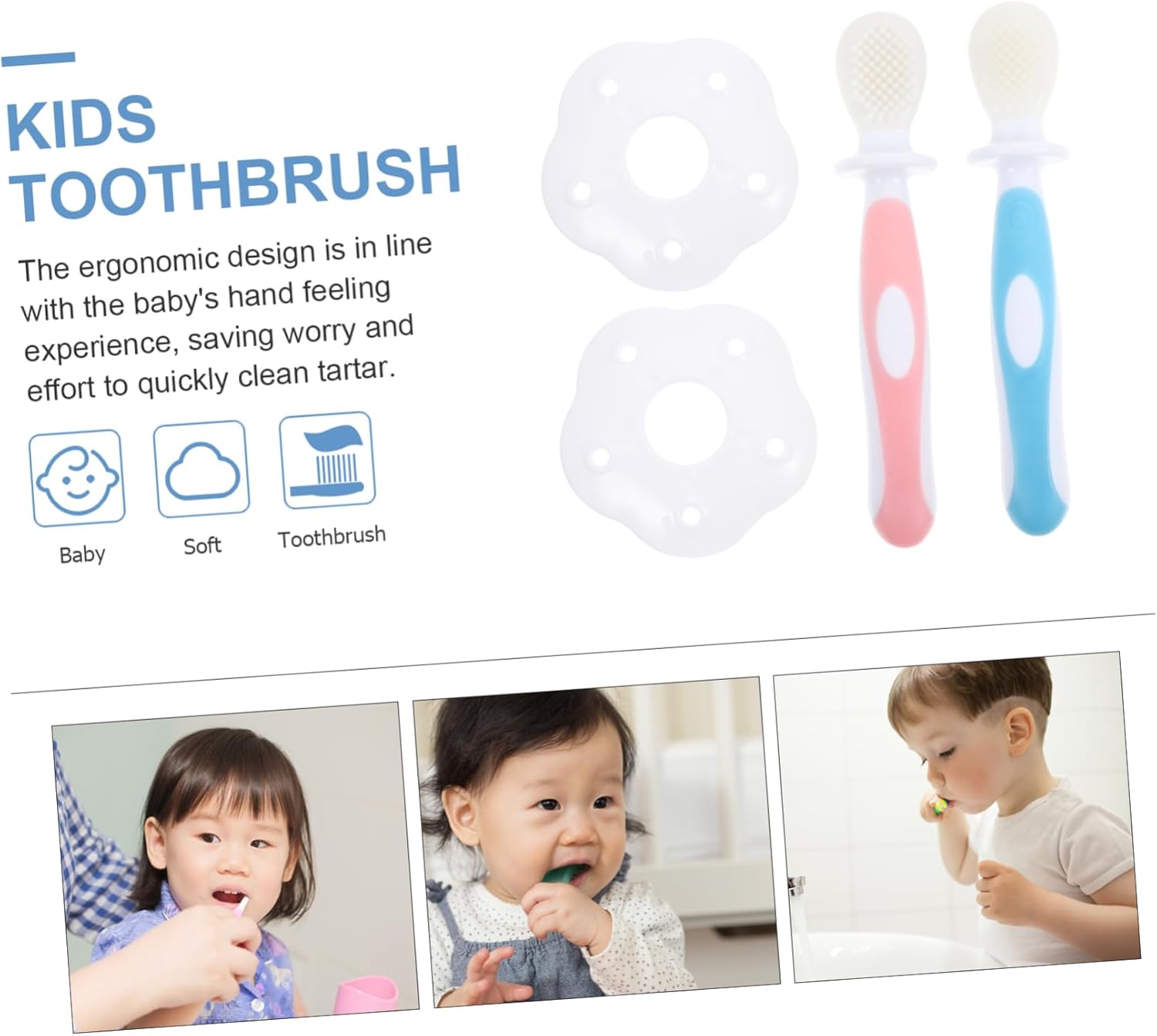 2 Sets Toothbrush De para Tooth Cleaning Supplies Oral Toothpaste Tooth Brush Teeth Cleaning Brush Silicone Brush Cleaning Accessories Pink