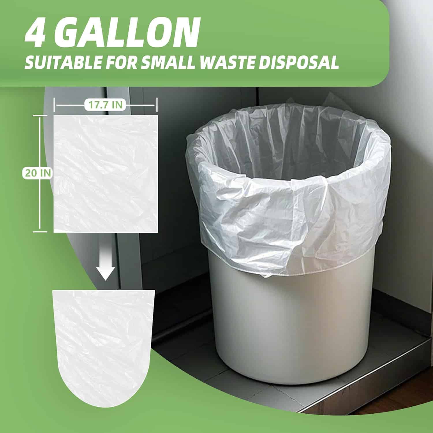 Convenient Size – Perfect for Bathroom and Office Use: With a capacity of 4 gallons (15 liters), these small trash bags are specially designed for use in bathrooms, offices, kitchens, and other small spaces. They fit perfectly in standard-sized trash cans, making it easy to maintain cleanliness and hygiene in your home or workspace