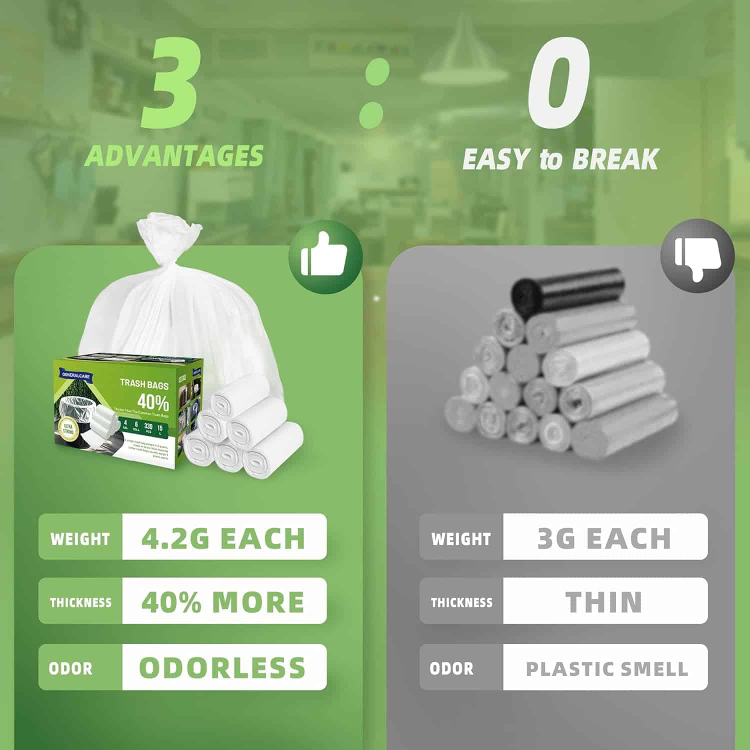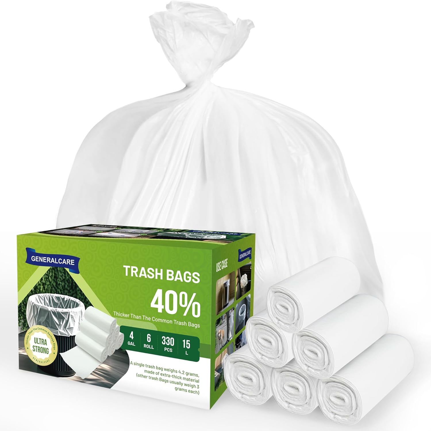 4 Gallon Small Trash Bags 330 Count Tear & Leak Resistant Small Garbage Bags For Bathroom White Trash Can Liners – 40% Thicker competitor brands roll bags