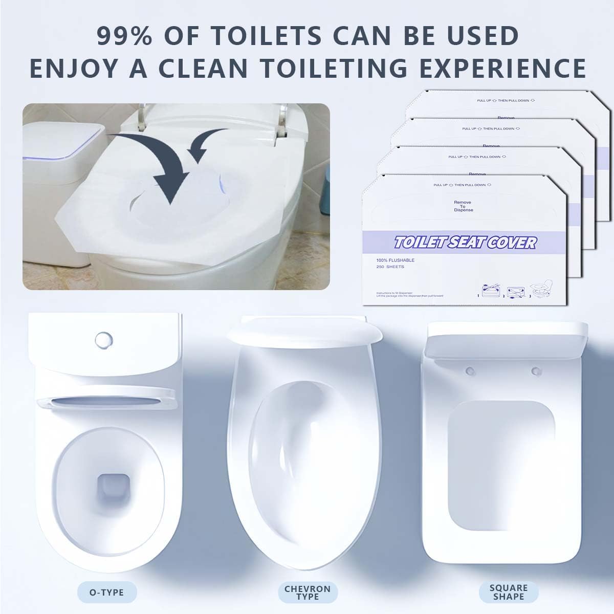 You will receive 4 packs of disposable paper toilet seat protectors covers, 250 per pack (1000 sheets total). Sufficient quantity suitable for public restrooms in hotels, restaurants, etc.