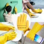 4-Pairs Reusable Natural Rubber Gloves, Rubber Dishwashing gloves, Cleaning Gloves, Non-Slip Gloves Long Sleeves, Kitchen Cleaning, Working, Painting, Gardening, Pet Care (Size L, Yellow)