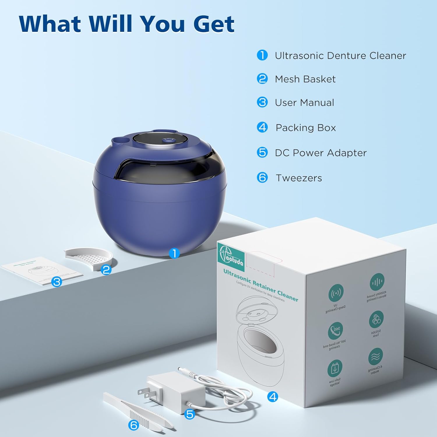 【Environmentally Conscious】: Our dental aligner cleaner pod uses only one tiny motor, providing minimum energy consumption. Compared to the energy used when scrubbing your appliances, this cleaning machine is much better for environment. It’s also an excellent gift for those who value cleanliness and hygiene and is even appreciated by environmentalists【Package List】1*Ultrasonic Retainer Cleaner, 1*DC Power Adapter, 1*User Manual, 1*Tweezers, 1*Mesh Basket, there is no solution or tablets