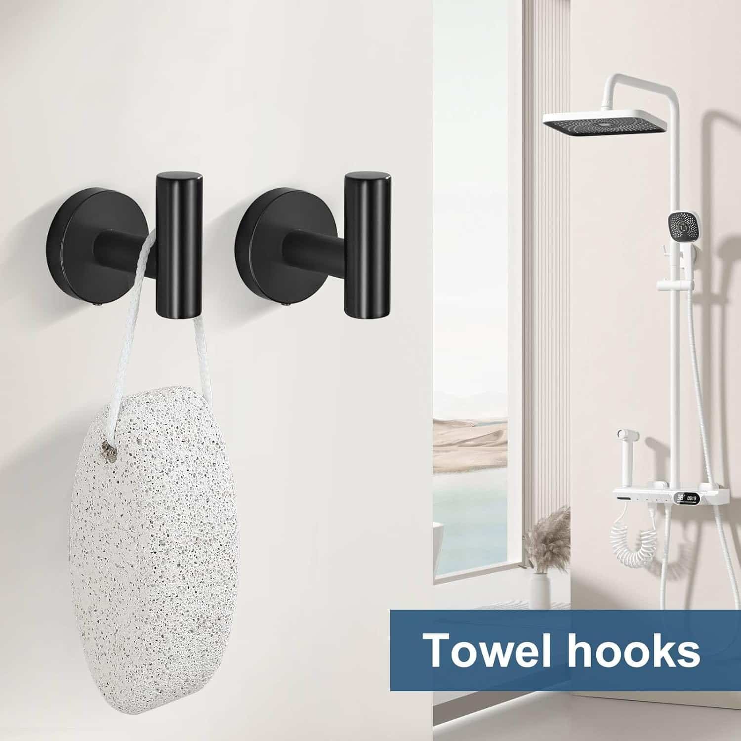 【Wide Application】 The bathroom black towel bar set can also be used in kitchens, cabinets, laundry rooms, living rooms, checkrooms, gyms, yachts and RVs, etc., which all work perfectly with towel racks and towel hooks.
