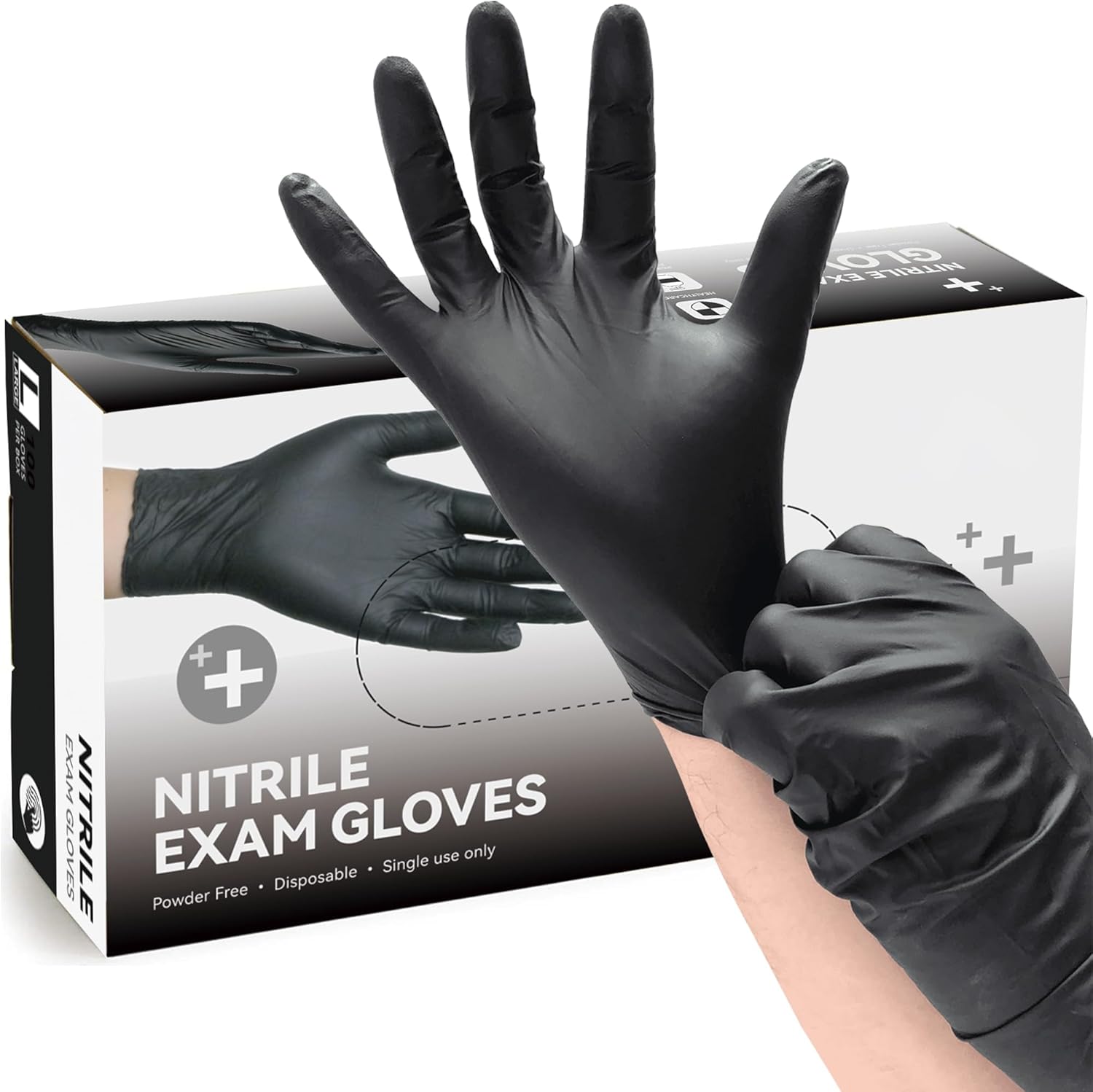 6Mil Black Disposable Nitrile Exam Gloves, Latex & Powder-Free, Non-Sterile for Medical, Cooking, Cleaning, Food Prep