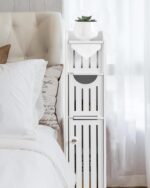 Multi-purpose Storage: use this small storage cabinet to organizing any room;use it as toilet paper stand between the wall and toilet in bathroom;used as a small bedside table in bedroom tight spaces, this toilet paper cabinet can use as pland shelves to storing home decors too