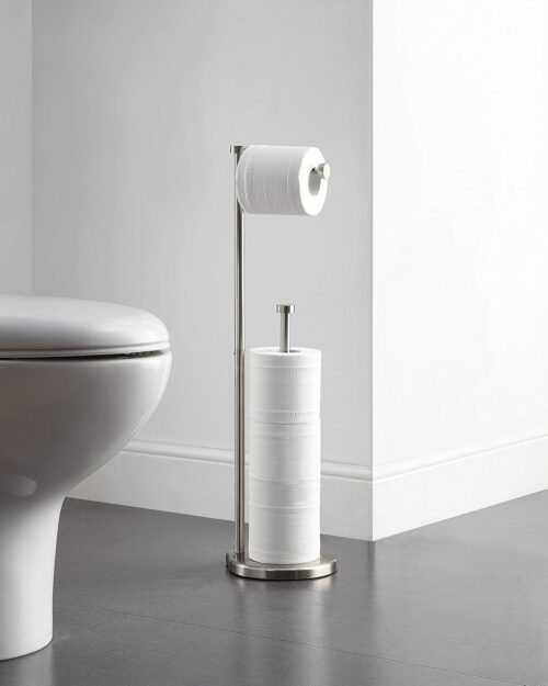 This bathroom storage cabinet great for holding toilet paper, with toilet paper spring rod to replacing toilet roll runs smoothly.A great toilet paper cabinet, perfect for your half bathroom to holding mega roll.