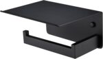 APLusee Matte Black Toilet Paper Holder with Shelf, Left Side 304 Stainless Steel Tissue Hanger, Wall Mounted
