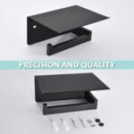 Finish Matte Black Net weight 1.19 lbs. (542 g) Material 304 Stainless Steel Overall Size L 6-7/8″ x D 5-5/16″ x H 3-3/8″ (174 x 135 x 85mm) Package Includes Cell Phone Paper Holder x 1 Wall Mounting Hardwares x 1 Set Applying Scenes Bathroom Toilet of family, commercial office, restaurant, hotel, flat, apartment, villa, rv, etc. Installation Method Wall mounted, different directions holes for final level adjustment before tightened screws. Care & Clean Methods 1. ONLY clean with a soft, damp cloth gently. 2. DO NOT USE detergents as they may harm the protective finish of your bath accessories. 3. Care period is 1-2 months, this care will maintain the metallic gloss finish. Warm Prompt 1. NOTE: Item surface is covered with a WHITE protective film and could be peeled off before using. 2. Due to light influence and display resolution, pictures and objects may have slightly color aberration. 3. Manual measure may occurs a little dimension deviation, please in kind prevail. NOTE: All photography props are NOT included in the package.