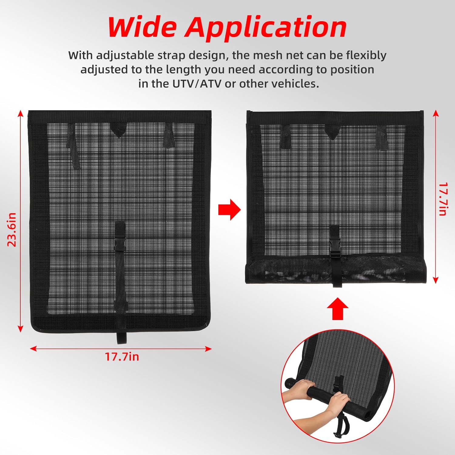 This UTV Mesh Trash Sack comes with adjustable strap, the mesh net can be flexibly adjusted to the length you need according to position in the UTV/ATV or other vehicles.