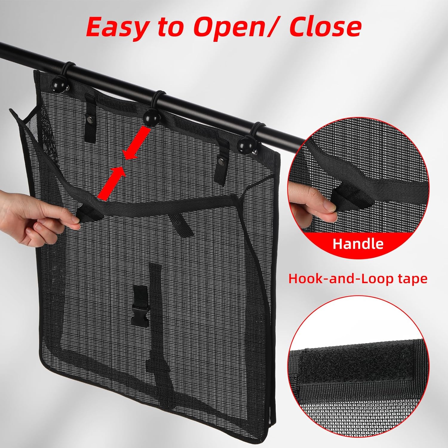 【Easy to Open/ Close】With Handle and Hook-and-Loop tape, the mesh bag is easy to open and close.