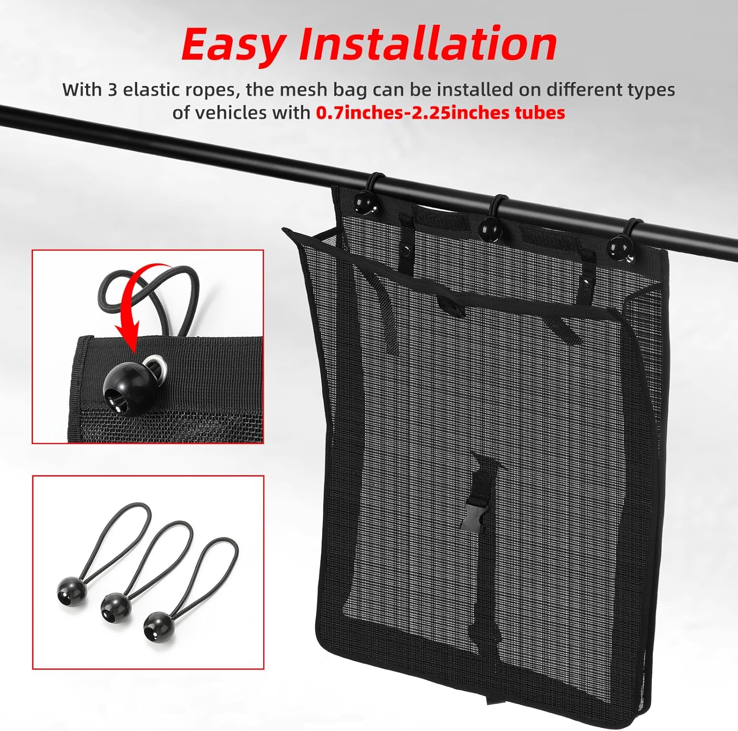 【Adjustable Strap Design】This UTV Mesh Trash Sack comes with adjustable strap, the mesh net can be flexibly adjusted to the length you need according to position in the UTV/ATV or other vehicles.
