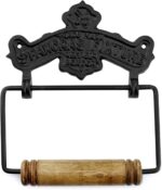 AuldHome Design Farmhouse Cast Iron Toilet Paper Holder; Wall Mount Vintage Decor Style Black TP Hanger