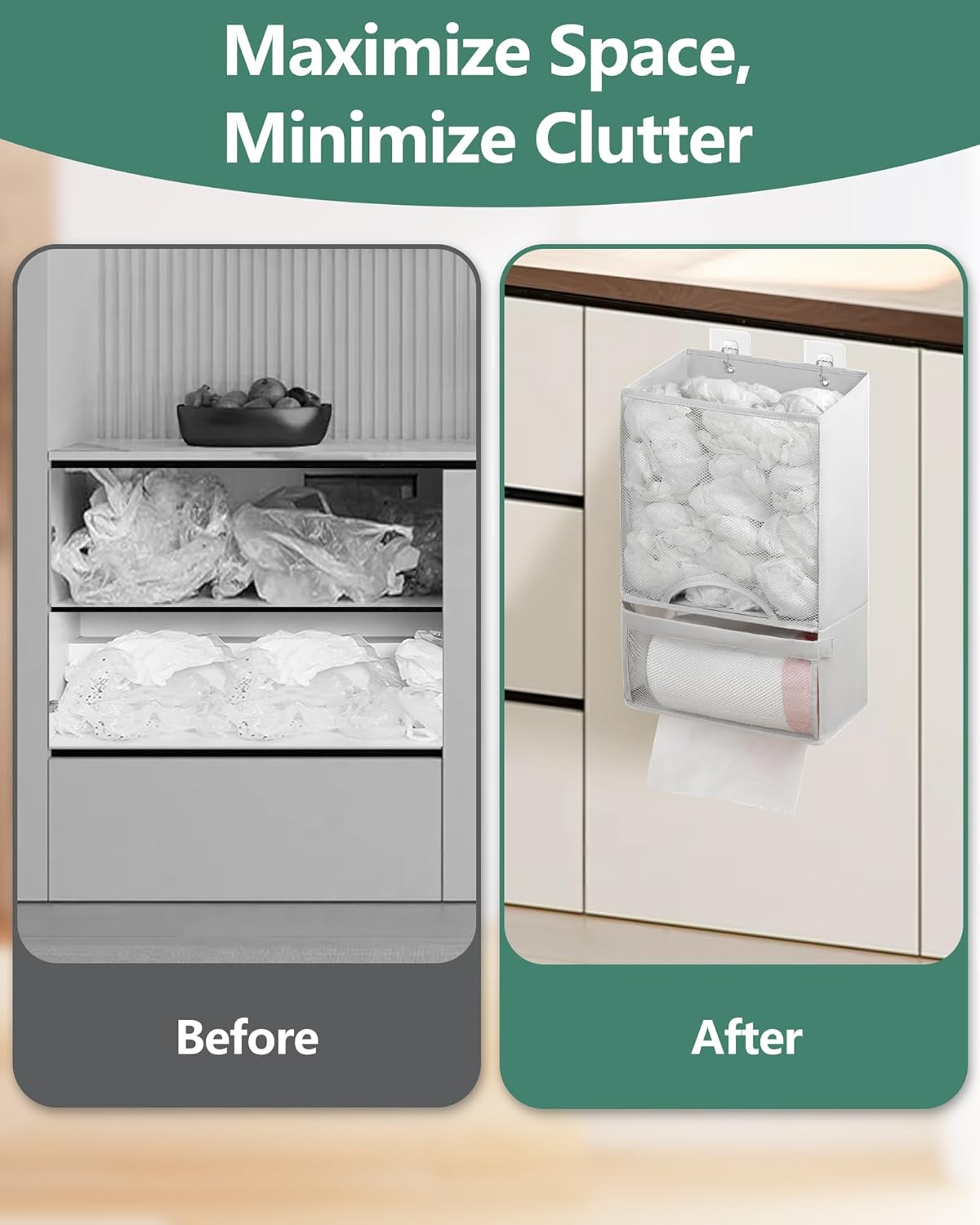 Bag Saver – Extra Large 2 in 1 Plastic Bag Holder, Durable Grocery Bag Storage, Hanging Trash Bag Dispenser Roll Organizer for Home Kitchen, Multi-Purpose for Daily, Wall Mount