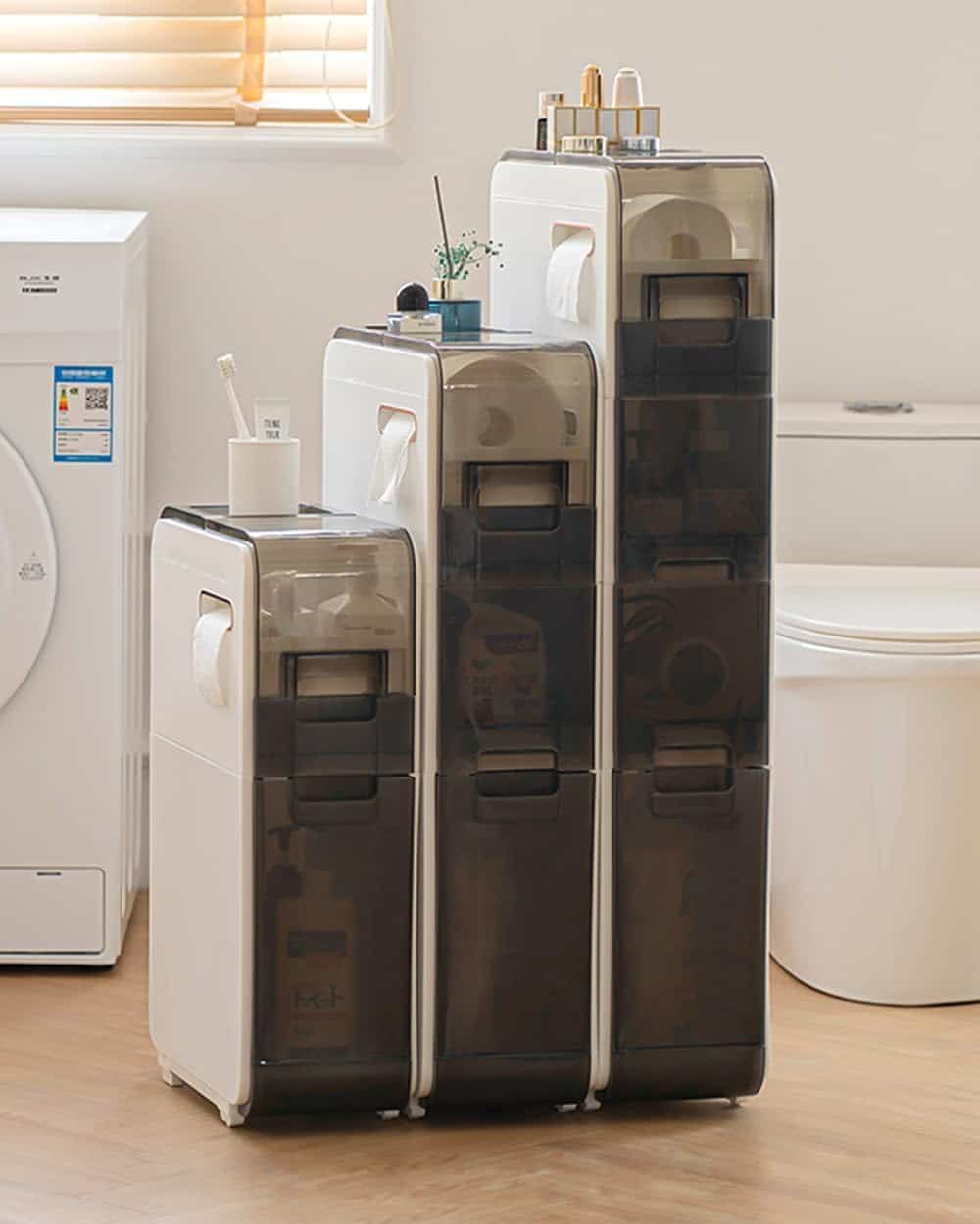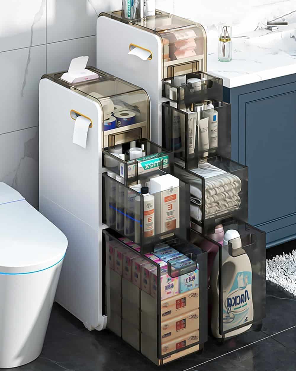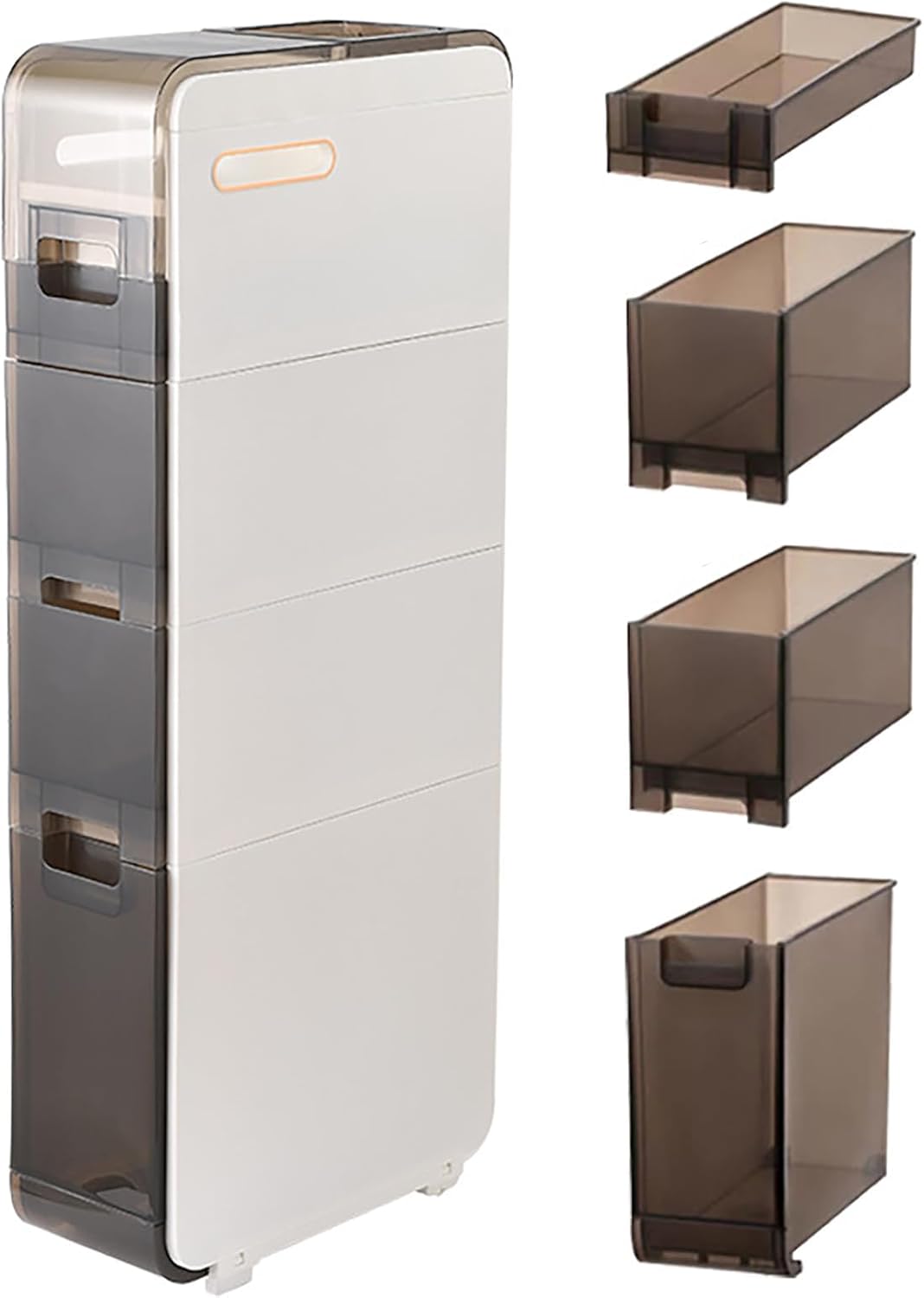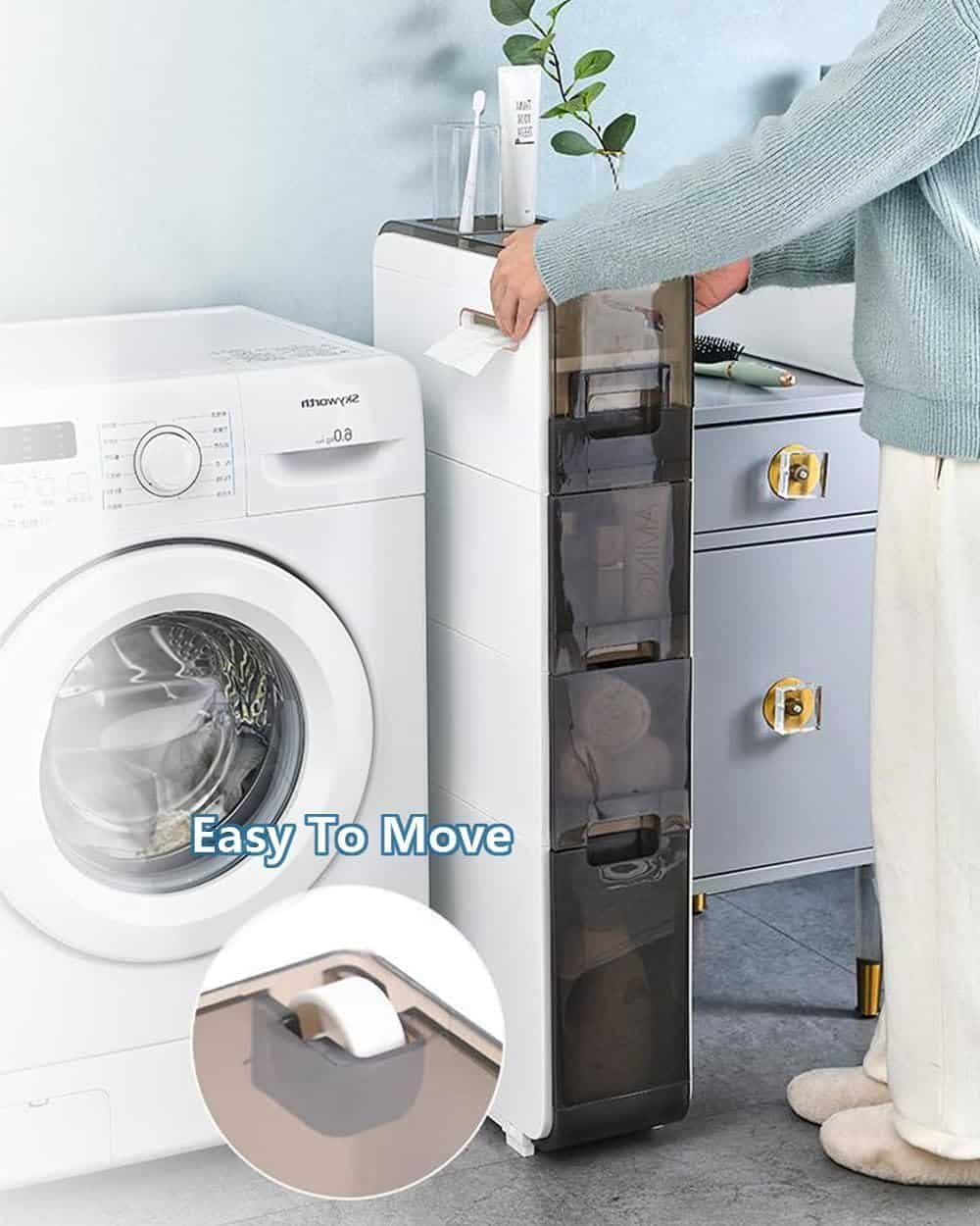 【Versatile Storage Unit】No installation required Ready to use right out of the box. Transparent drawers and layered storage allow you to quickly find what you need. Slim bathroom floor storage cabinet feature silent casters, allowing it to be moved to other spaces while protecting floor from scratches. This skinny bathroom organizer takes up no floor space and maximizes storage space.