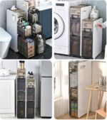 【Space-Saving】The slit floor storage cabinet is only 6.9 inches wide. Our storage cabinets are cleverly laid out to organize a wide range of daily necessities such as cosmetics, toiletries, toilet paper, towels and other essentials providing ample storage space. Skinny freestanding organizer keeps your belongings organized and your living space free of clutter.