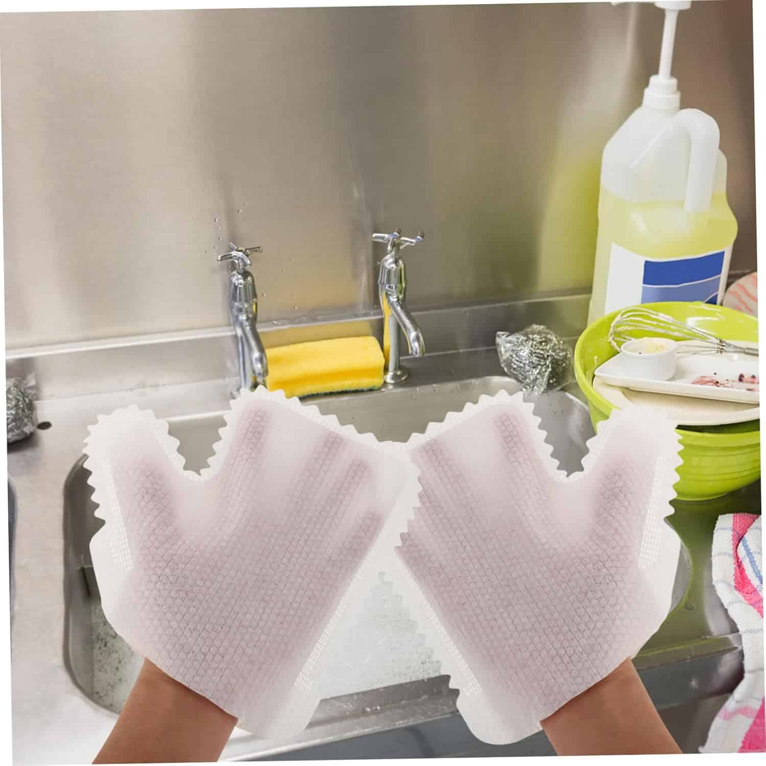 BESTYASH Reusable Duster Gloves Thick Non Woven and Dishwashing Gloves for Household Cleaning Kitchen Wipes and Mitts White