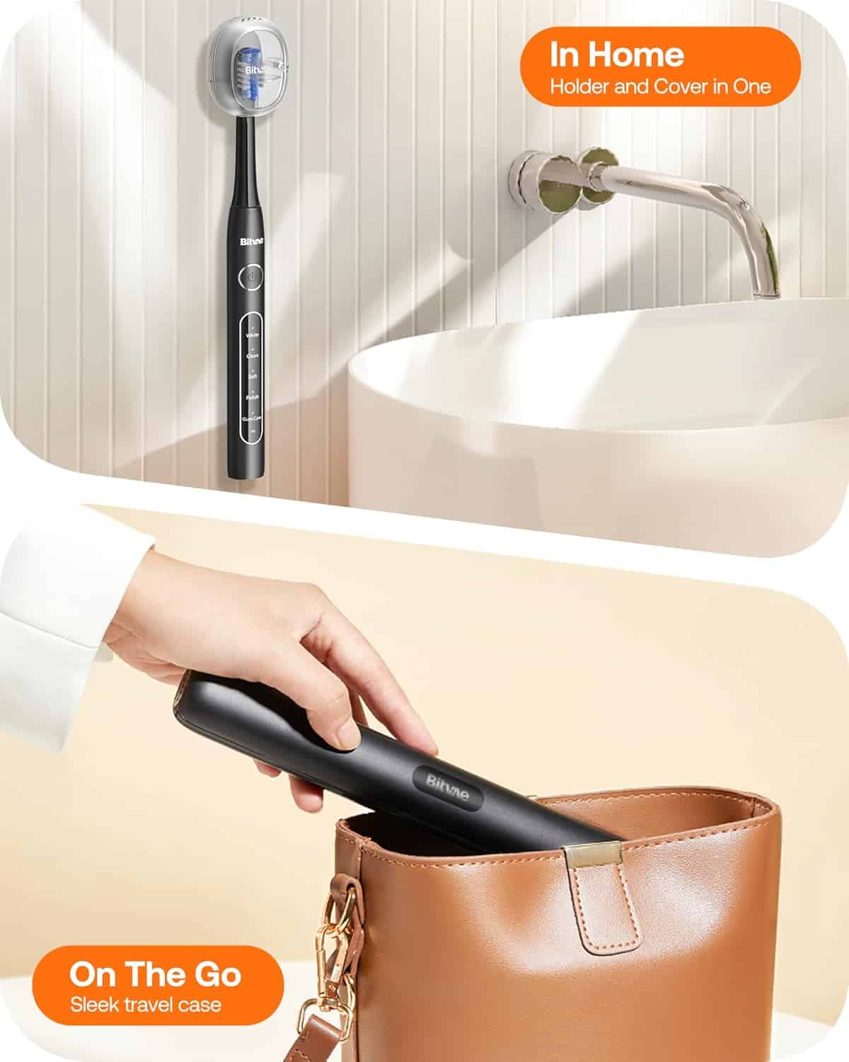 Daily Use-Friendly 2-in-1 Toothbrush Holder and Cover: This electric toothbrush features a versatile holder that not only keeps your toothbrush clean and hygienic but also doubles as a protective cover, shielding it from dust and water between uses