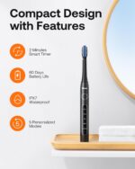Bitvae Ultrasonic Electric Toothbrush for Adults and Kids, ADA Accepted Travel Electric Toothbrush with Rechargeable 60-Day Battery Life, 8 Toothbrush Heads, 5 Modes, Toothbrush Holder, Shadow Black
