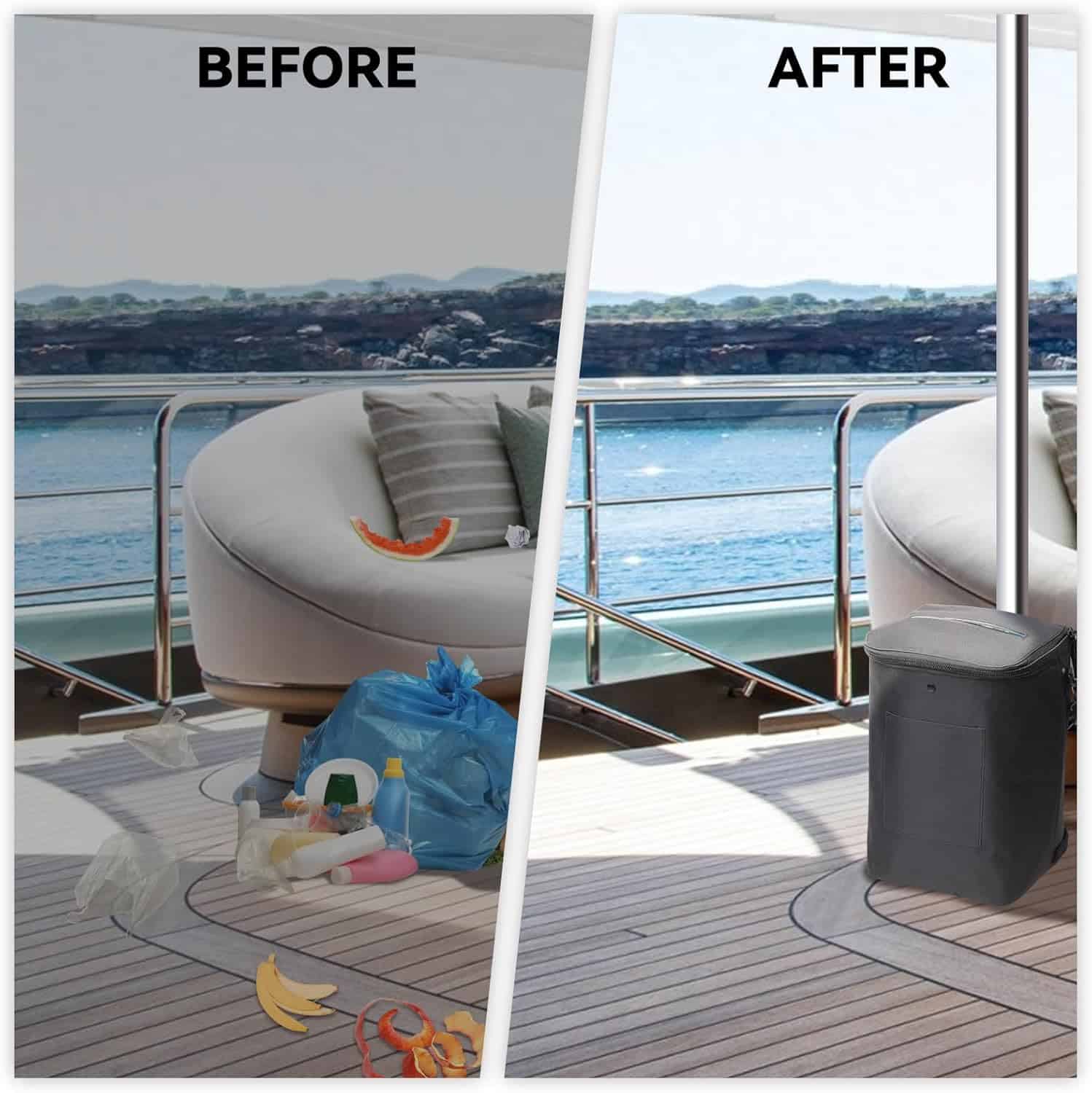 【COLLAPSIBLE&ODOR-FREE DESIGN】:Equipped with a secure drawstring lid that seals tightly to prevent ants and contain odors. Our advanced odor-free inner rubber technology ensures a fresh environment, enhancing your boating experience without unpleasant smells.The collapsible shape offers maximum convenience and space-saving functionality