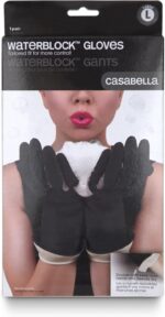 The Casabella WaterBlock Premium Gloves are designed with a double cuff. The double cuff ensures water is caught and blocked from reaching your arm. A tapered and tailored fit grants you greater dexterity. Additionally, with its tighter fit, your fingers will feel more secure allowing for more productivity. The outer material is made of durable latex that is engineered to have a long life. The fingers of the gloves are embossed with a texture that enhances the gripping power. This is especially useful when holding wet slippery objects when washing dishes or similar activities. For added comfort, the gloves are lined with a cotton flock lining. The lining helps breathability and is great for extended periods of use, but also prevents your hands from retaining that awful latex smell that so often refuses to go away. Use the glove in complete comfort for a variety of functions such as dishwashing, shower cleaning, car washing, arts and crafts and so much more. These black gloves have a size large fit and comes with 1 pair.