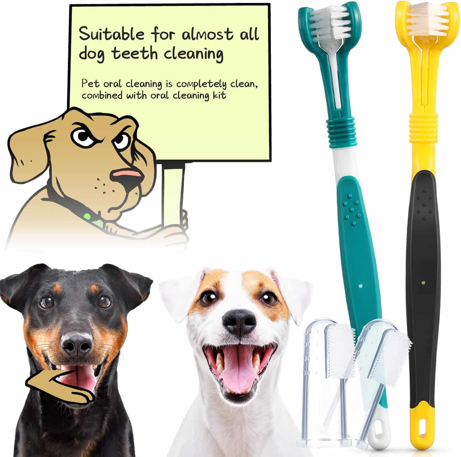 Package includes: you will receive a dog teeth cleaning kit including 3 pieces dog tooth scalers and scrapers, 2 pieces of 3 head dog toothbrushes, and 2 pieces silicone dog finger toothbrushes, enough quantity and various tools to meet your dog’s daily tooth cleaning