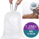 Custom Fit Drawstring Trash Bags Compatible with Code MJ | White Drawstring Garbage Liners Advantages of Trash Bags: – DRAWSTRING BAGS : White trash bag with grey drawstring closure for easy tying and carrying; – PERFECT FIT : Compatible with Code M trash cans; – HEAVY DUTY : Tear Resistant 1.2 Mil Thickness. Strong enough to tolerate all residential household garbage and commercial waste. – STRONG DRAWSTRING HANDLES : Reliable handles easily help lift, tie & carry trash bags without a tear. – Wide Application : This plastic trash bags not only used for kitchen trash can, but also for office, bedroom, living romm, bath room and car. Also store other books, clothing items, organizers of holiday decorations.
