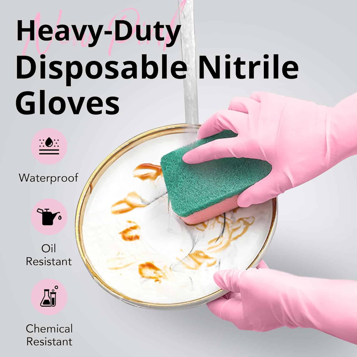 Disposable Nitrile Dishwashing Gloves, Extended 12 Inches Cuff, 6-mil, Cherry Blossom Cleaning Gloves, Latex-Free