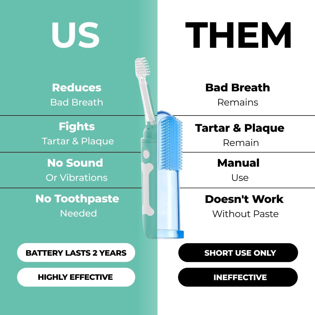 Dog Toothbrush | Innovative Eletrolytic Technology | Improves Oral Health & Reduces Bad Breath | No Vibrations & Silent Teeth Cleaning Brush | No Toothpaste Needed | Dog Teeth Cleaning Kit