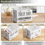 Fits Most Brands of Trash Bags: DRASTAR trash bag dispenser roll holder is 10.2″x 7.2″x 7″, It is a Lightweight solid wood handmade trash bag storage box and the interior will accommodate most standard-sized bag holder for plastic bags (Approximately 100 bags)