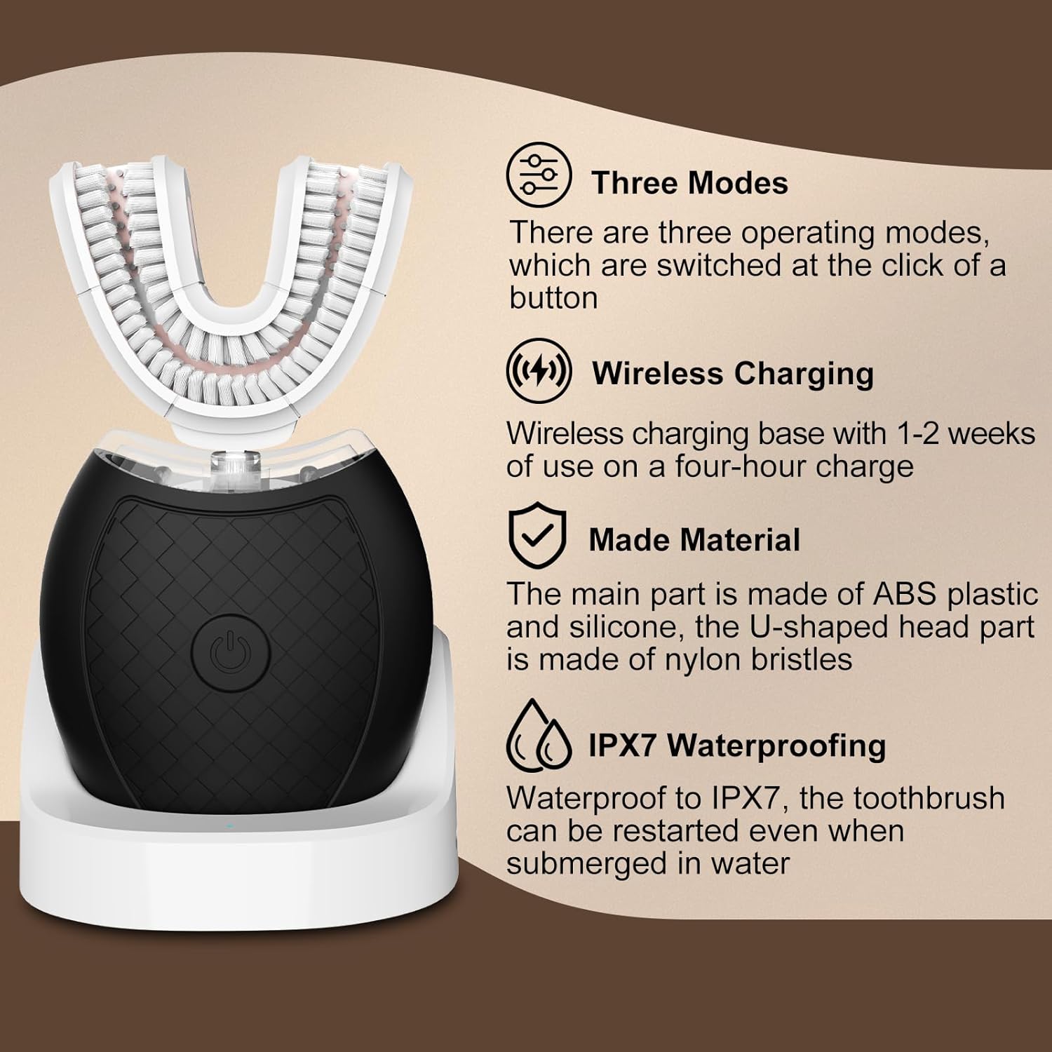 U Shaped Toothbrush:With a U-shaped design that matches the shape of your teeth, this u shaped toothbrush can reach your teeth in 360 degree and clean your teeth with high-frequency sonic vibrations