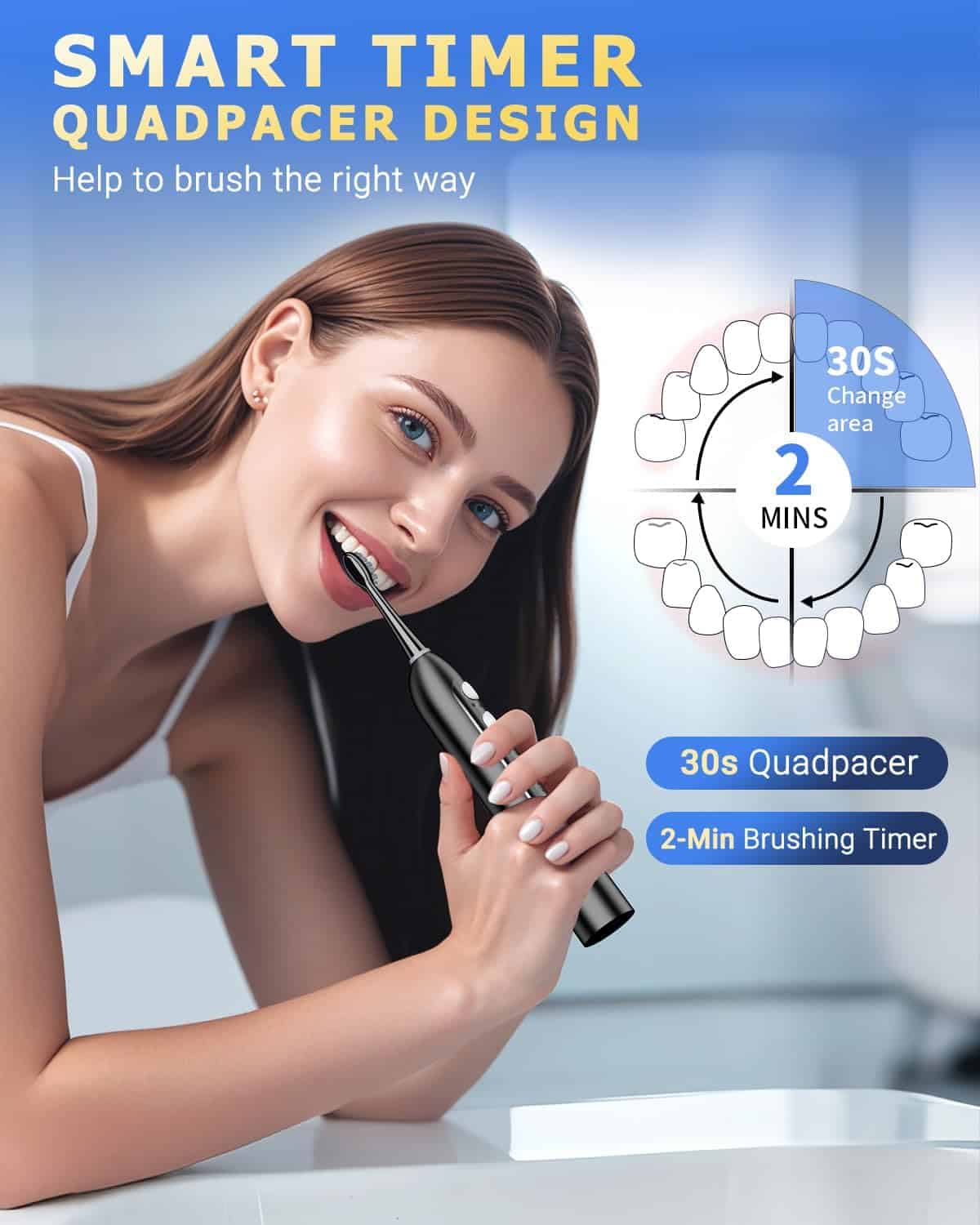 IPX7 WATERPROOF & 30S SMART TIMER – The electric toothbrush with water flosser combo in one provides dual protection to prevent water leaks and you can use it in the shower. The built-in smart timer features 30-second intervals to remind you to move to the next quadrant of your mouth, total 2 minutes for complete coverage.