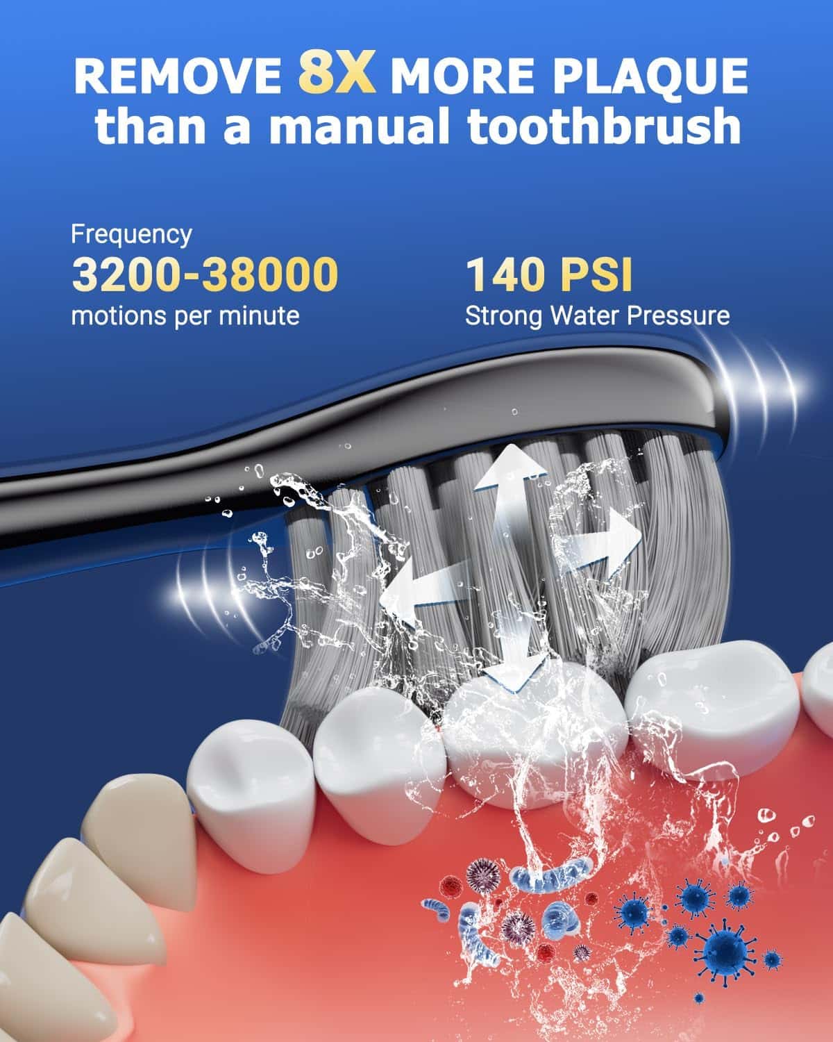 3X EFFECTIVE POWERFUL SONIC TOOTHBRUSH- With 40,000 sonic vibrations per minute, our sonic electric toothbrush combo reducing gum bleeding up to 3x more than manual toothbrushs. Our electric flosser toothbrushes for adults provides effective remove oral hidden deep, massage the gum effectively.