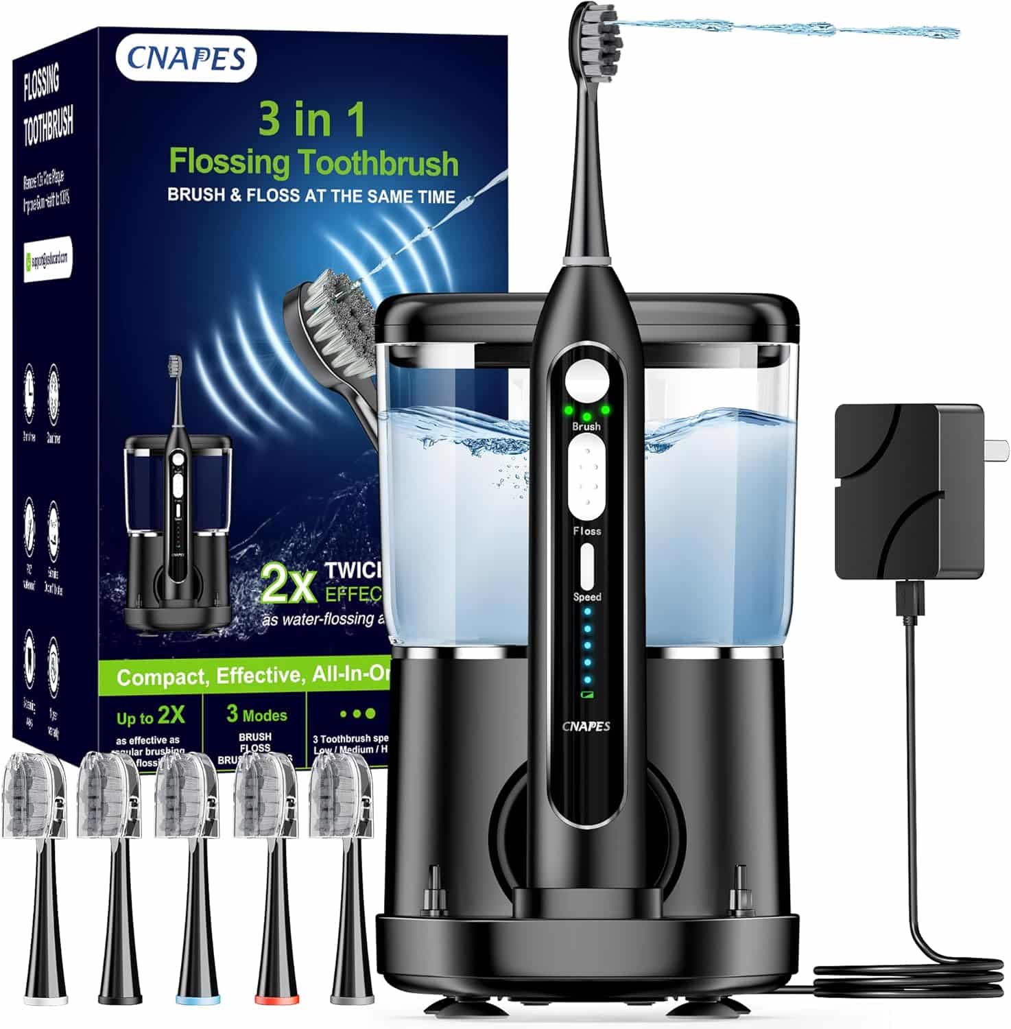 WHAT’S IN THE BOX & 24/7 CUSTOMER ASSISTANCE – 1 Flossing Toothbrush, 5 Replacement Brush He/ads, 1 User Manual, 1 Water Reservoir, 1 Brush Head Storage Case, and 1 Cord Plug. Furthermore, we’ve got your back with 24/7 customer support. Need help? Just reach out anytime—it’s that simple!