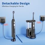 PORTABLE & EASY TO CHARGE – Detachable design, easily detaches the handle from the water hose. No need to pack the whole set! Plus, sonic rechargeable electric Powered toothbrush comes with a wireless charging base and a cord plug, 2 charging options – all with a single charge lasting weeks. Easy on the go!