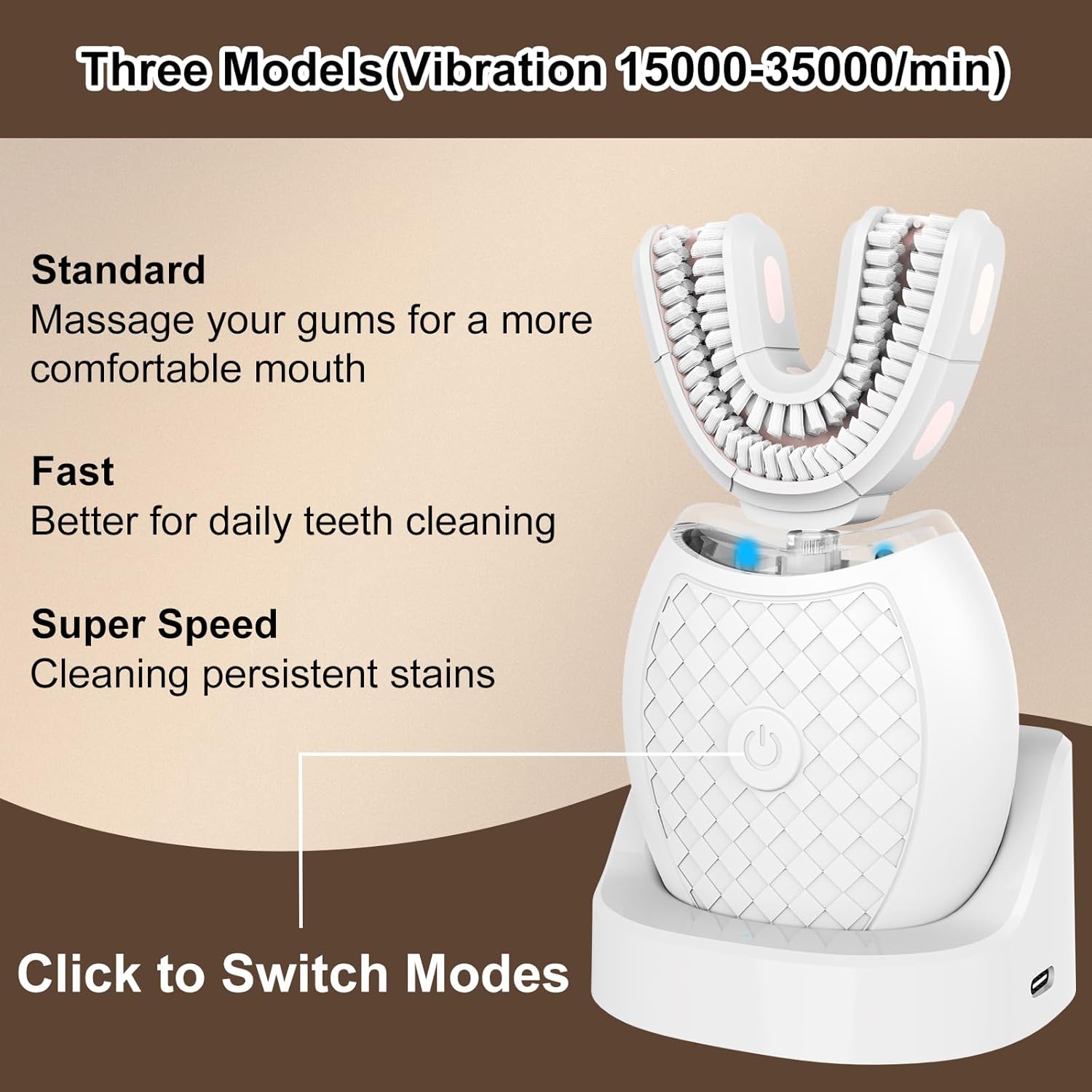 U Shaped Toothbrush:With a U-shaped design that matches the shape of your teeth, this u shaped toothbrush can reach your teeth in 360 degree and clean your teeth with high-frequency sonic vibrations