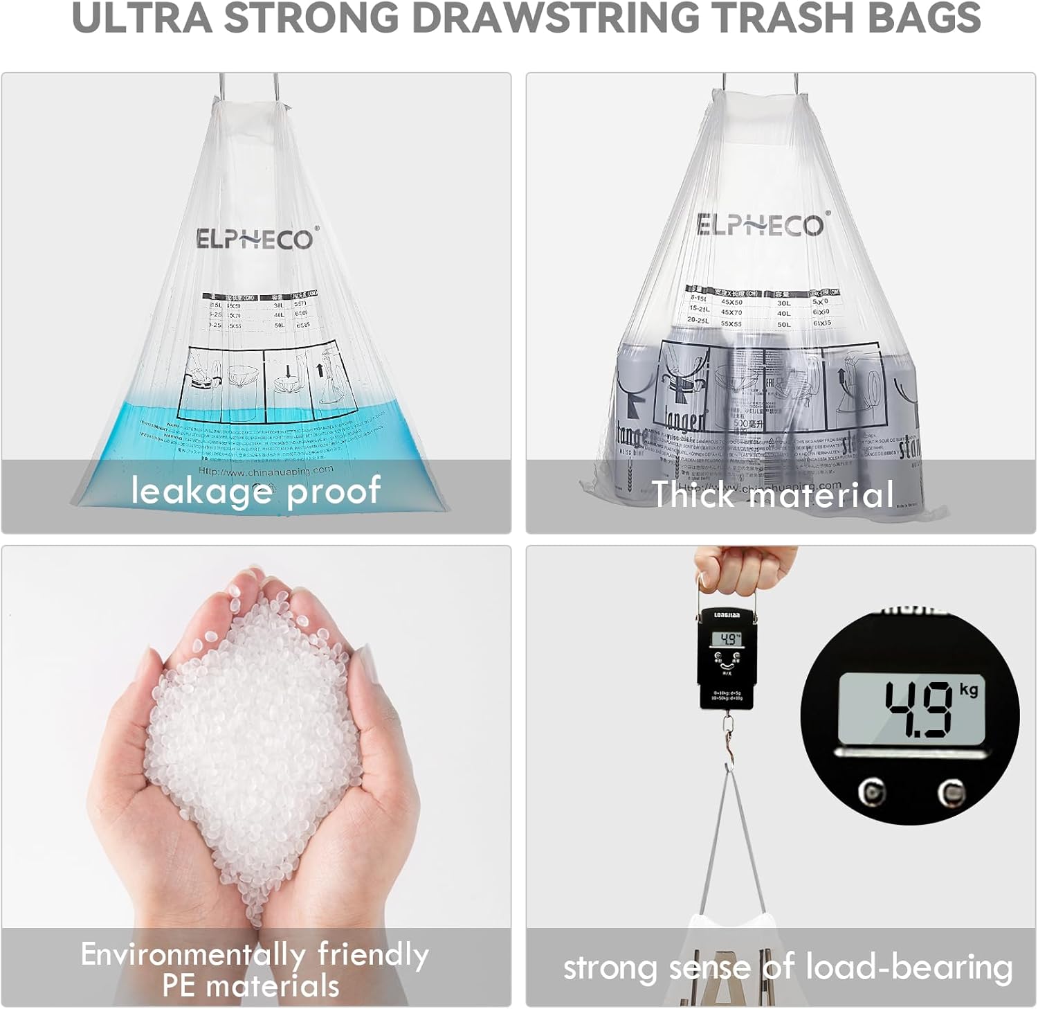 ELPHECO 2.5 Gallon Trash Bags │ 15 Liters Drawstring Garbage Bags │ Small Trash Bags For Bathroom Office Living Room Use │ Suitable For 1.5-4 Gallon Trash Can │ 18″×20″ │ 180 Count / 18 Rolls │ A