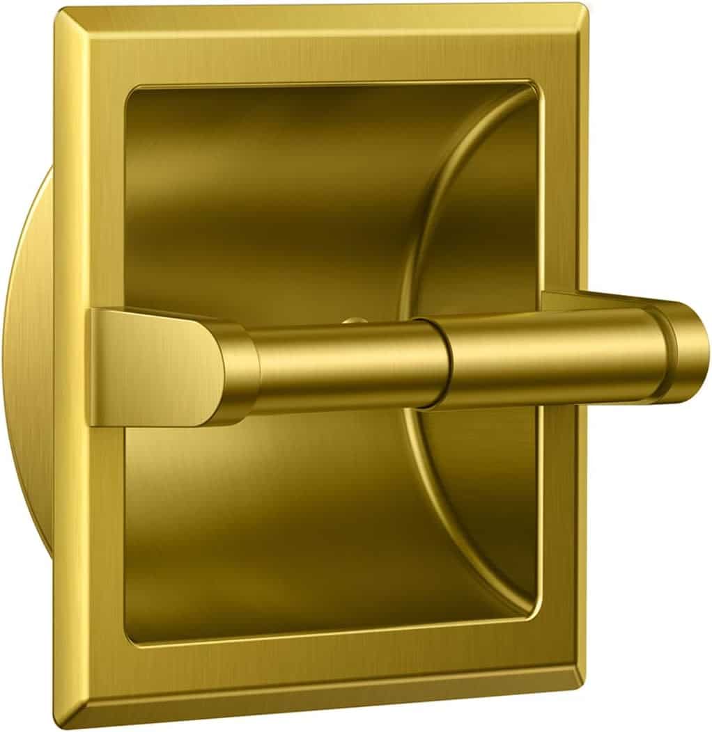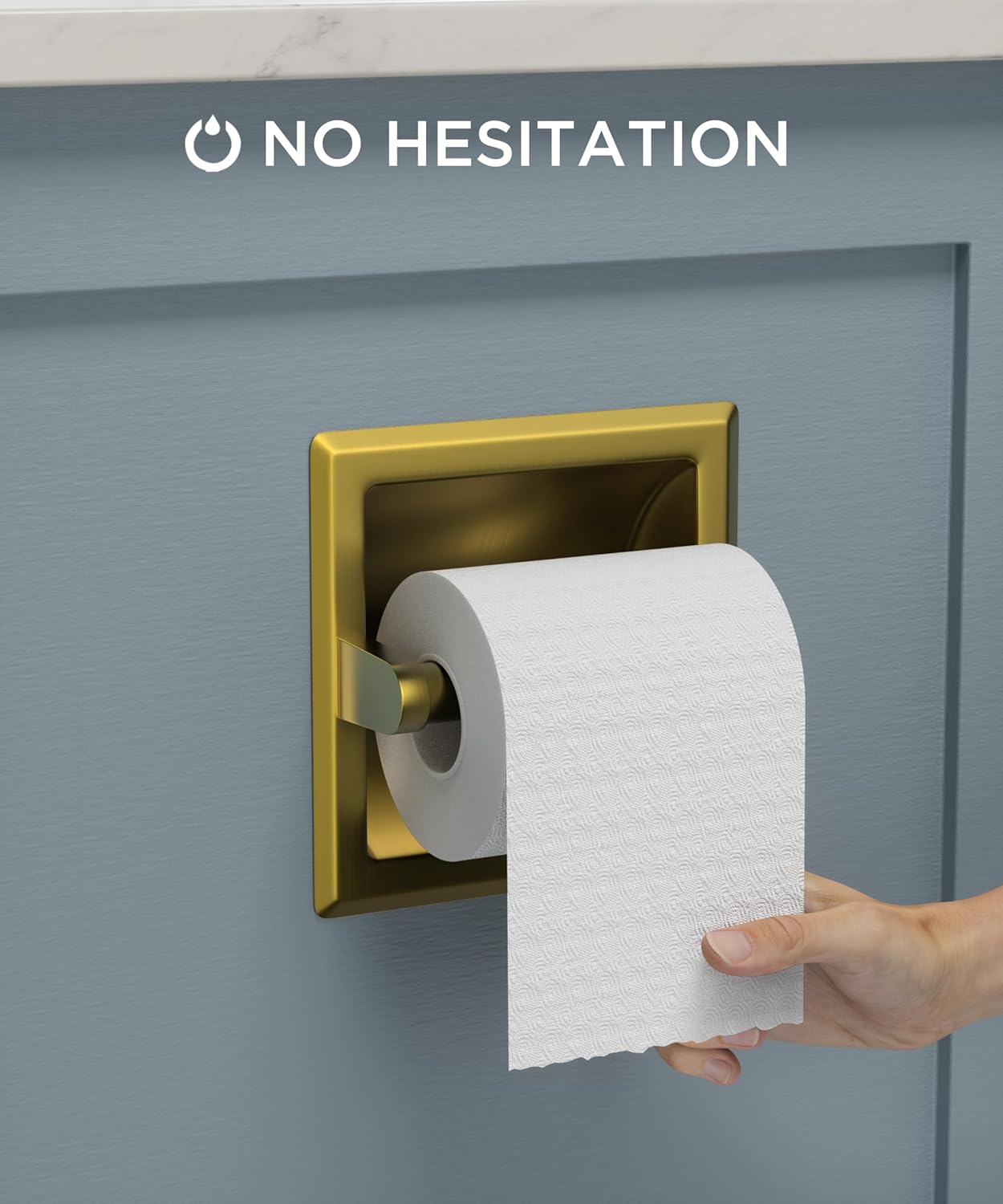 FORIOUS Recessed Toilet Paper Holder, Stainless Steel Durable Tissue Roll Holder Wall Mount for Bathroom Space Saving Design with Mounting Bracket, in Wall Toilet Paper Dispenser Insert, Brushed Gold