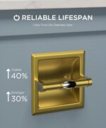 DURABILITY: The brushed gold toilet paper holder is made of high-quality 304 stainless steel, the stability and firmness are greatly improved, with a reliable lifespan and there is no problem of paper rolls slipping