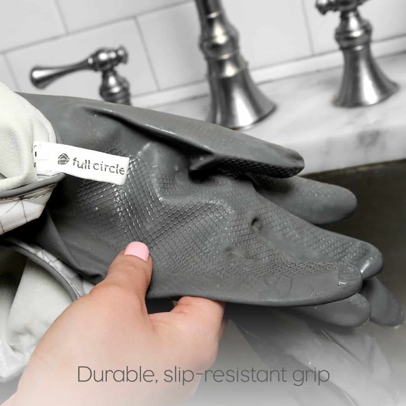 Full Circle Splash Patrol Natural Latex Cleaning and Dish Gloves, Medium/Large, Grey