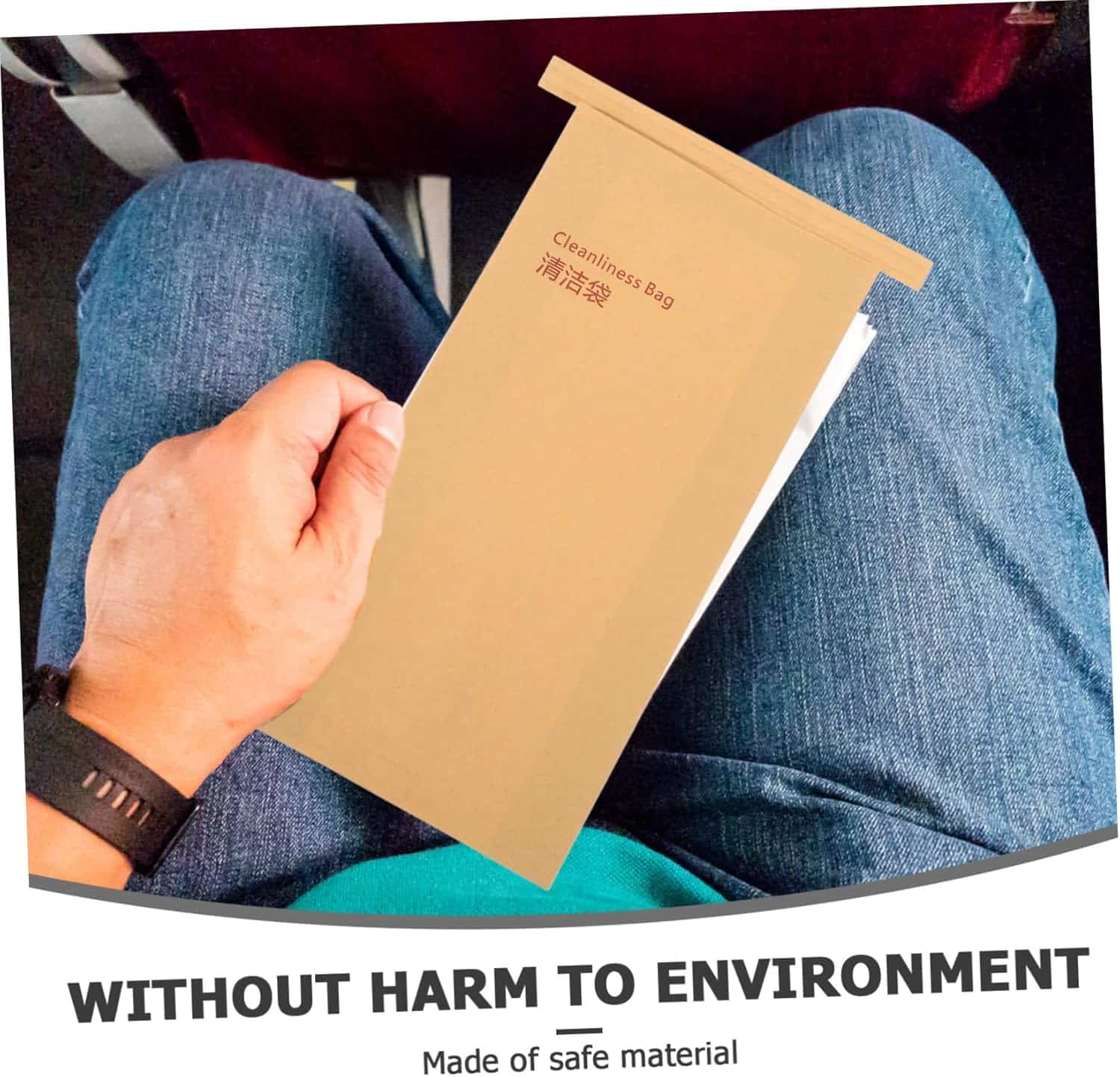 50pcs Travel Barf Bag Trash Bags Garbage Bags Outdoor Trash Bag Portable Barf Bags Paper Carsickness Vomit Bags Motion Sickness Bag Car Sickness Bag Kraft Paper Light Brown