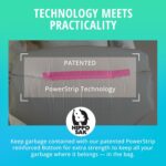KEEP GARBAGE CONTAINED: Our trash bags feature a patented PowerStrip reinforced bottom for extra strength to keep all your garbage where it belongs—in the bag. The innovative technology maintains bag integrity and cleanliness in your kitchen or home
