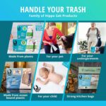 UNBEATABLE STRENGTH AND DURABILITY: Made in the USA, our recycling ocean bound trash bags are 10 times stronger than the leading brands and puncture resistant. With a thicker design and 4-ply extra-wide handles, Hippo Sak eco friendly trash bags offer superior strength and durability to prevent leaks, tears, and spills